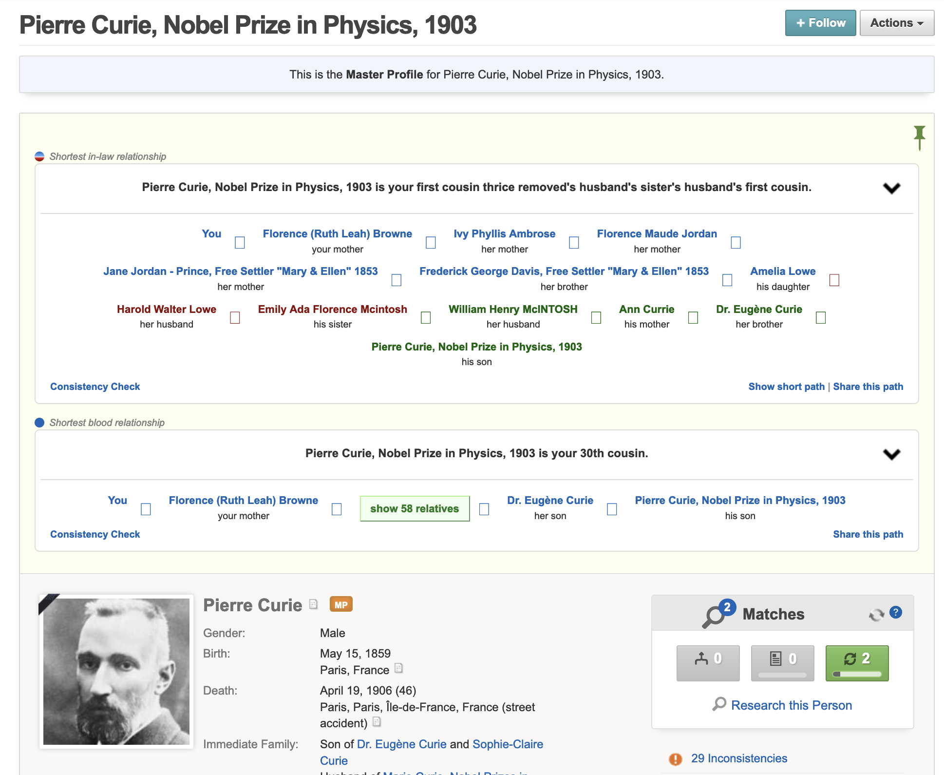 [7] His parents there are given as Nicholas and Grace but the family name has been transcribed as either Bics or Biss, so others have missed this. Usually, his date of birth is given as 1701 in St Enoder, but his brother Malachi was born then and Luke has no baptism record in St Enoder. If his mother Grace was born in 1655 (we haven't found a record for this yet), then she was 30 for the birth of her first child, Mary, at St Enoder and 32 for the birth of Luke. However, she would be too old for the birth of the later children attributed to her. We are now working on the descendants of Luke's supposed siblings to see whether we can get a DNA match, though the signal would be very weak.